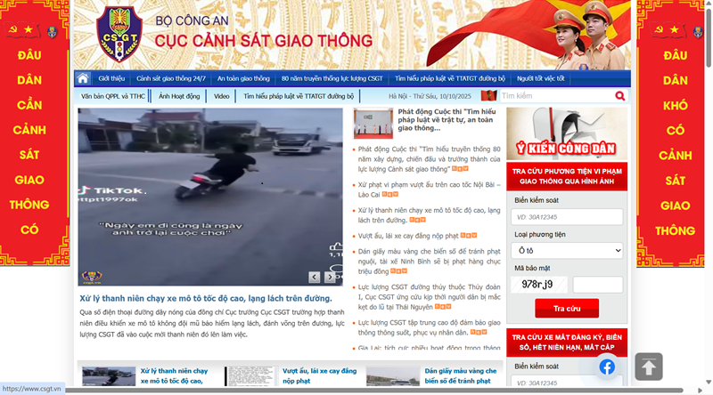 Trang web của Cục Cảnh sát Giao thông (csgt.vn) là kênh tra cứu phạt nguội chính thống, cho phép người dùng kiểm tra vi phạm bằng cách nhập biển số xe. Dữ liệu được cập nhật trực tiếp từ hệ thống của lực lượng chức năng, đảm bảo độ tin cậy cao.