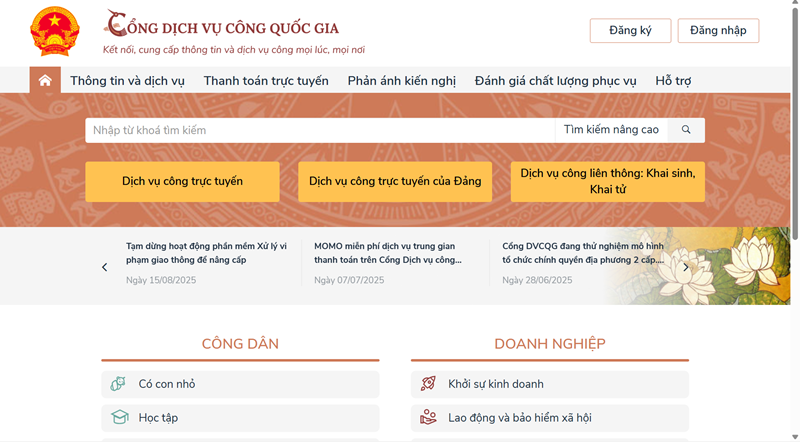 Tra cứu qua Cổng dịch vụ công quốc gia (dichvucong.gov.vn)