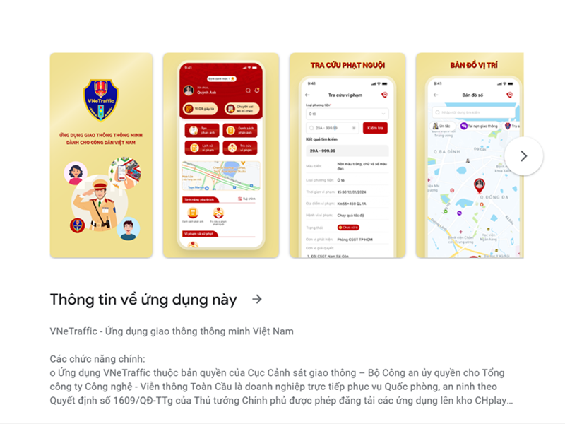 VNeTraffic là ứng dụng do Bộ Công an phát triển, cho phép người dùng tra cứu vi phạm giao thông bằng CCCD hoặc biển số xe. Giao diện thân thiện, dễ sử dụng và có thể phản ánh vi phạm trực tiếp.